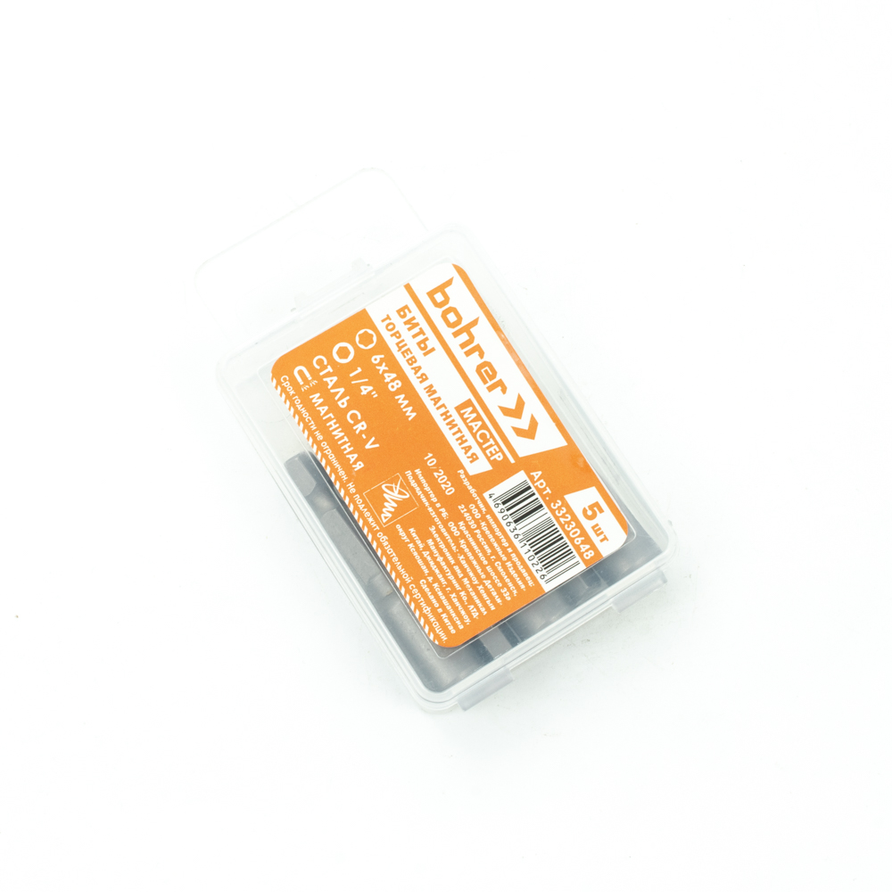 Бита Cерия Мастер торцевая 6x48 мм (сталь CrV) магнитные (5 шт в пластиковой уп.)