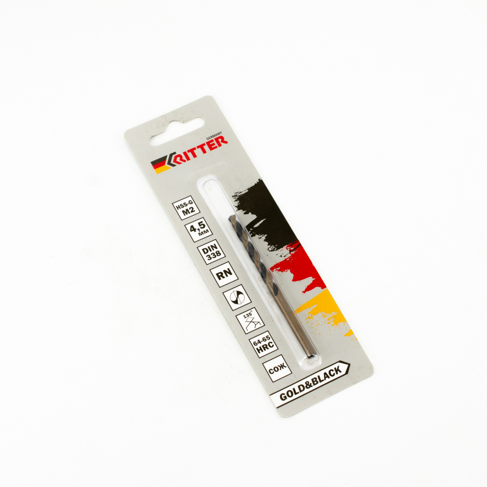 Сверло по металлу Ritter EC 4,5 мм (HSS-G M2 Gold&Black) DIN 338 RN (1 шт в блистере)