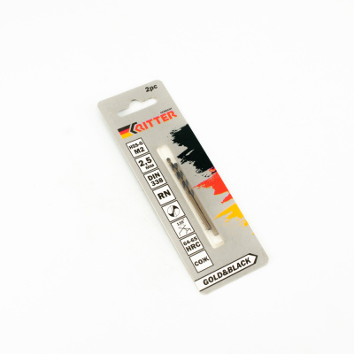 Сверло по металлу Ritter EC 2,5 мм (HSS-G M2 Gold&Black) DIN 338 RN (2 шт в блистере)