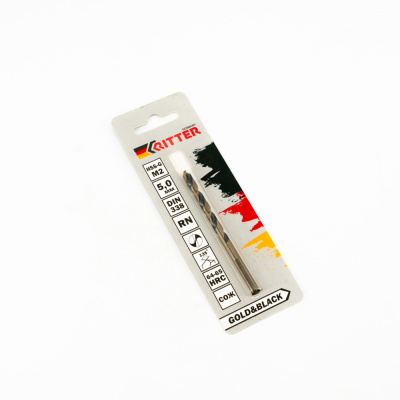 Сверло по металлу Ritter EC 5,0 мм (HSS-G M2 Gold&Black) DIN 338 RN (1 шт в блистере)
