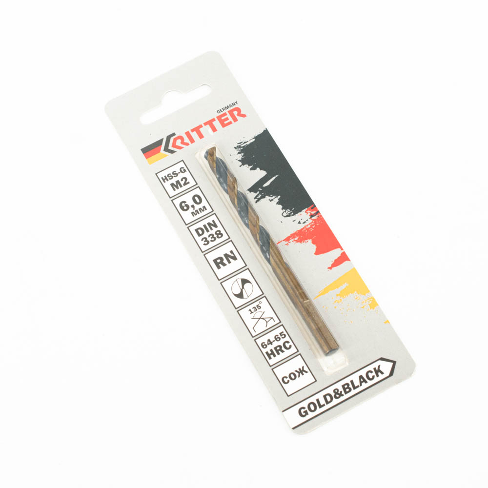Сверло по металлу Ritter EC 6,0 мм (HSS-G M2 Gold&Black) DIN 338 RN (1 шт в блистере)