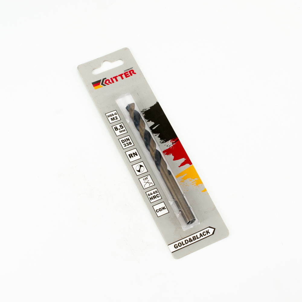 Сверло по металлу Ritter EC 8,5 мм (HSS-G M2 Gold&Black) DIN 338 RN (1 шт в блистере)