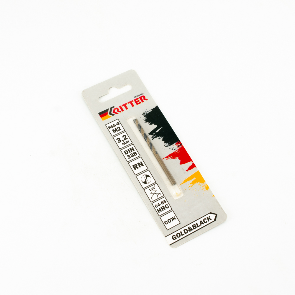 Сверло по металлу Ritter EC 3,2 мм (HSS-G M2 Gold&Black) DIN 338 RN (1 шт в блистере)