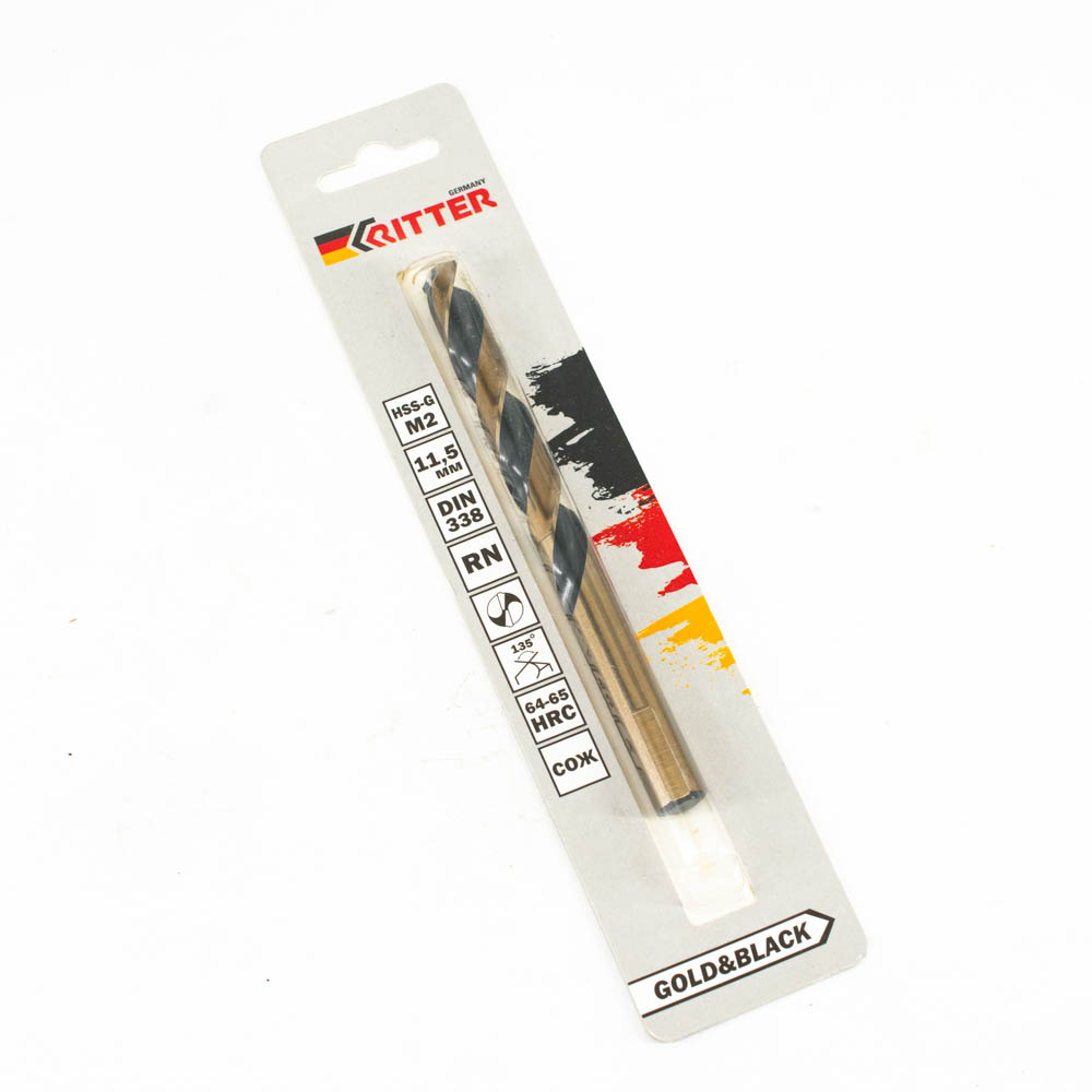Сверло по металлу Ritter EC 11,5 мм (HSS-G M2 Gold&Black) DIN 338 RN (1 шт в блистере) (250/50/1)