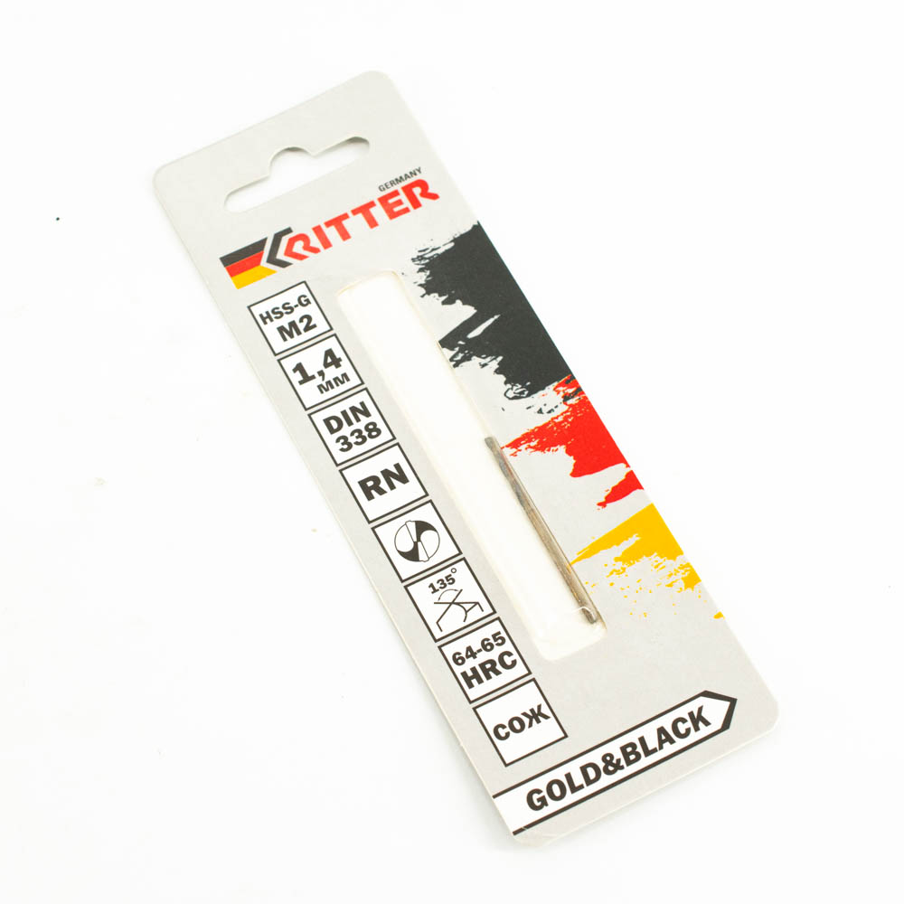 Сверло по металлу Ritter EC 1,4 мм (HSS-G M2 Gold&Black) DIN 338 RN (1 шт в блистере) (1000/250/1)