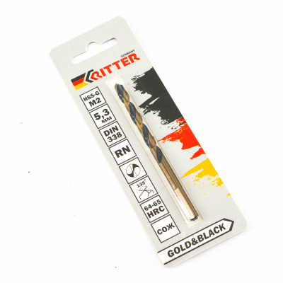 Сверло по металлу Ritter EC 5,3 мм (HSS-G M2 Gold&Black) DIN 338 RN (1 шт в блистере) (1000/250/1)