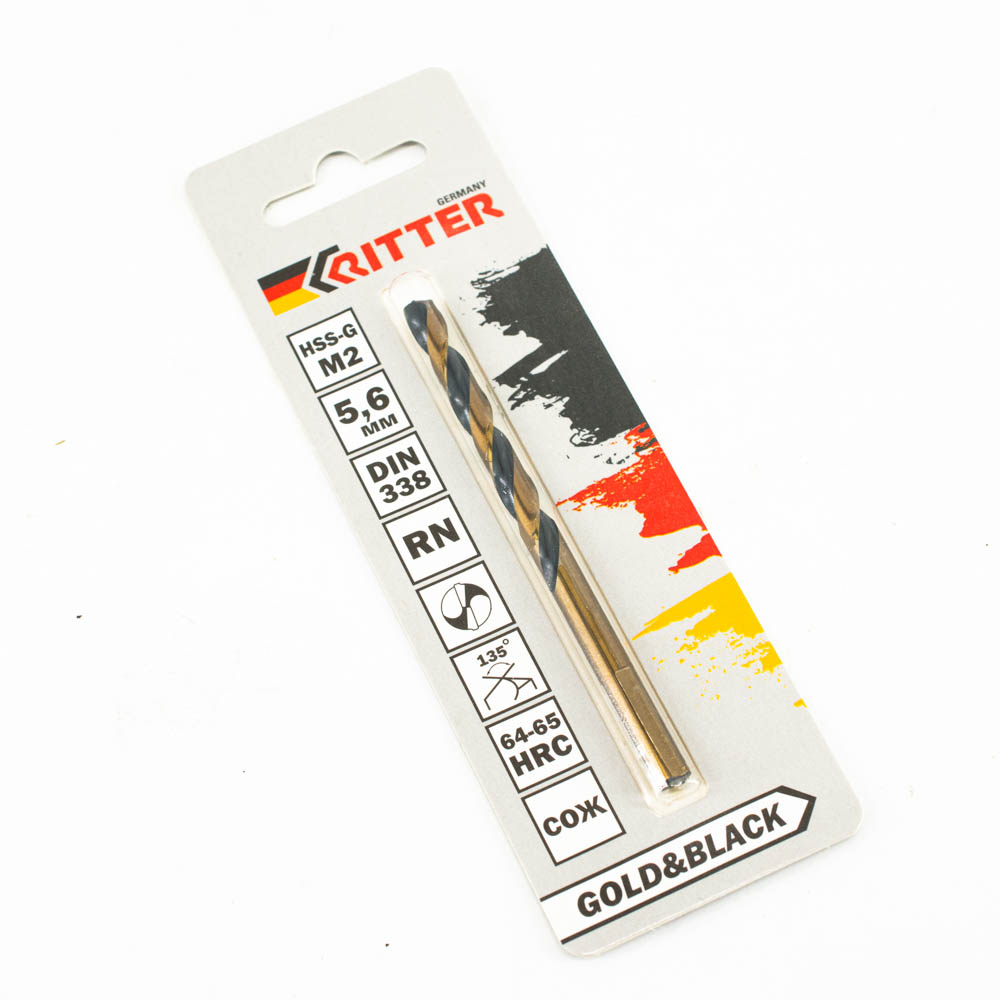 Сверло по металлу Ritter EC 5,6 мм (HSS-G M2 Gold&Black) DIN 338 RN (1 шт в блистере) (1000/250/1)