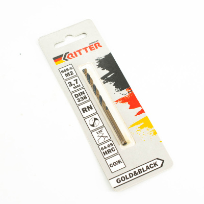 Сверло по металлу Ritter EC 3,7 мм (HSS-G M2 Gold&Black) DIN 338 RN (1 шт в блистере) (1000/250/1)