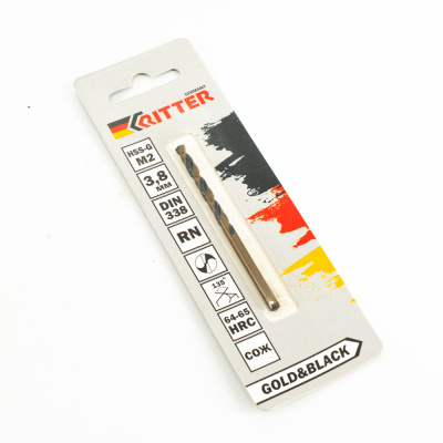 Сверло по металлу Ritter EC 3,8 мм (HSS-G M2 Gold&Black) DIN 338 RN (1 шт в блистере) (1000/250/1)
