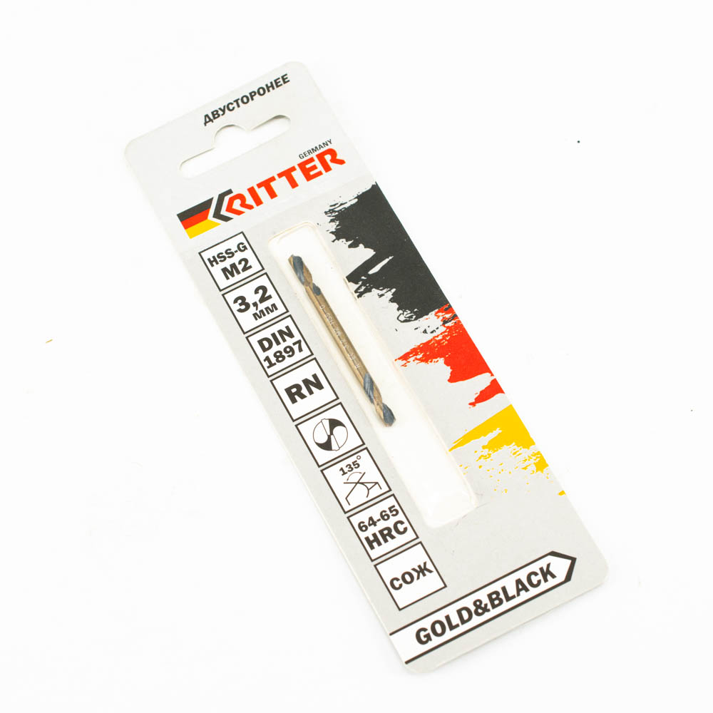Сверло по металлу Ritter EC двухстороннее 3,2 мм (HSS-G M2 Gold&Black) DIN 1897 RN (1 шт в блистере) (1000/250/1)