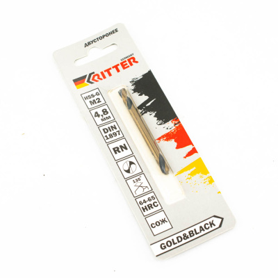 Сверло по металлу Ritter EC двухстороннее 4,8 мм (HSS-G M2 Gold&Black) DIN 1897 RN (1 шт в блистере) (1000/250/1)