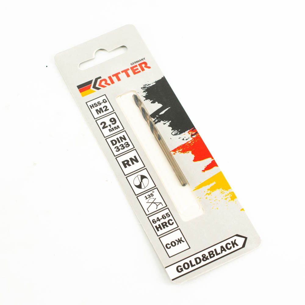 Сверло по металлу Ritter EC 2,9 мм (HSS-G M2 Gold&Black) DIN 338 RN (1 шт в блистере) (1000/250/1)