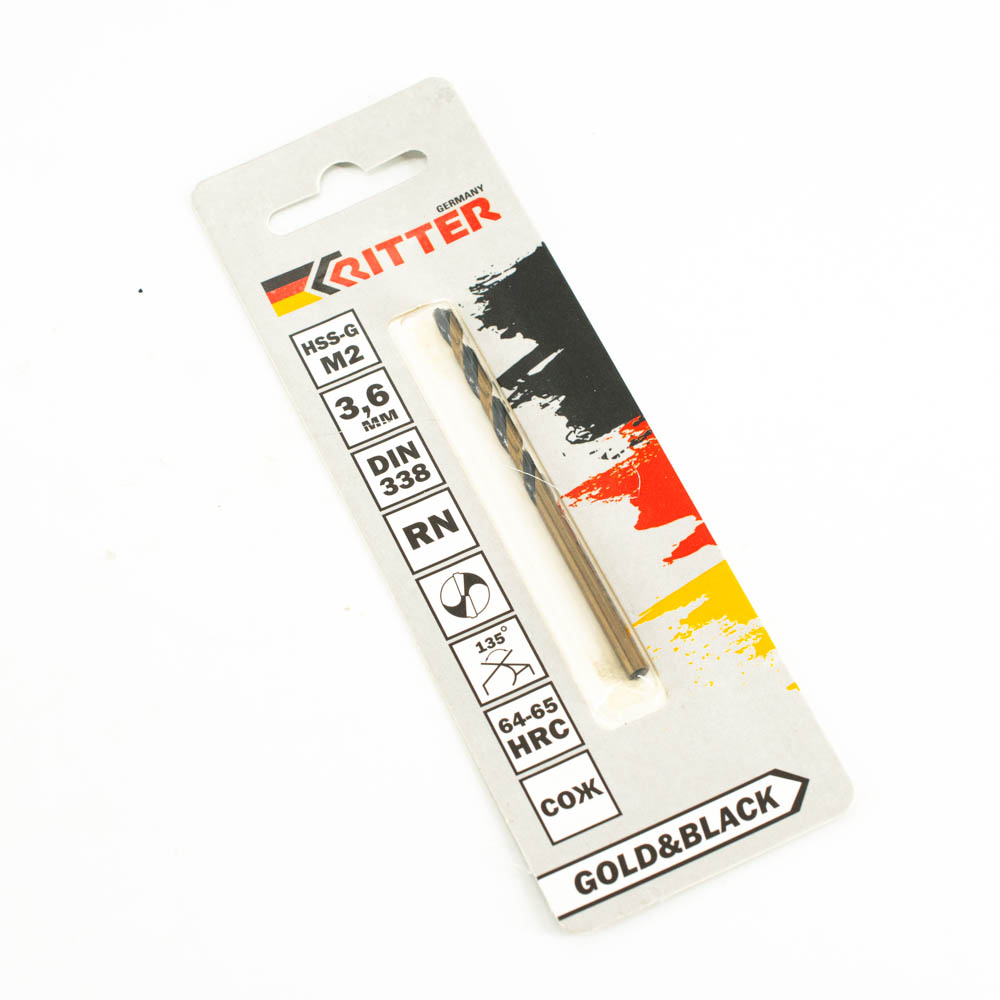 Сверло по металлу Ritter EC 3,6 мм (HSS-G M2 Gold&Black) DIN 338 RN (1 шт в блистере) (1000/250/1)