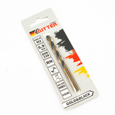 Сверло по металлу Ritter EC 5,9 мм (HSS-G M2 Gold&Black) DIN 338 RN (1 шт в блистере) (1000/250/1)