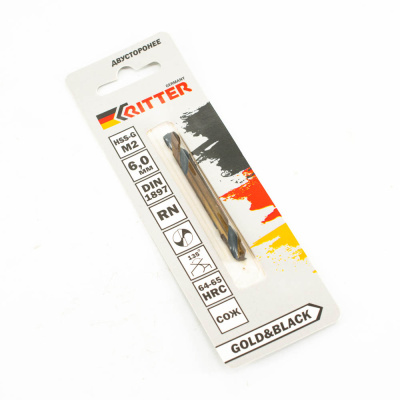 Сверло по металлу Ritter EC двухстороннее 6,0 мм (HSS-G M2 Gold&Black) DIN 1897 RN (1 шт в блистере) (1000/250/1)