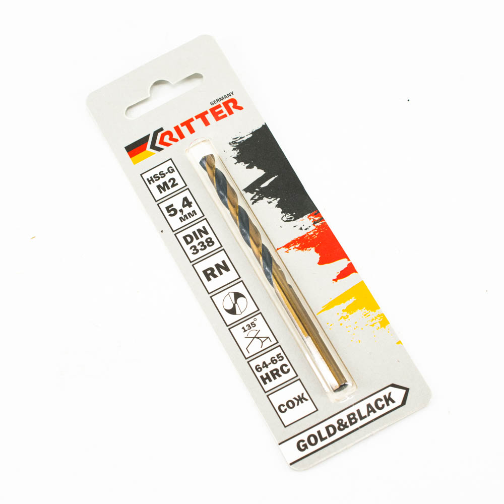 Сверло по металлу Ritter EC 5,4 мм (HSS-G M2 Gold&Black) DIN 338 RN (1 шт в блистере) (1000/250/1)