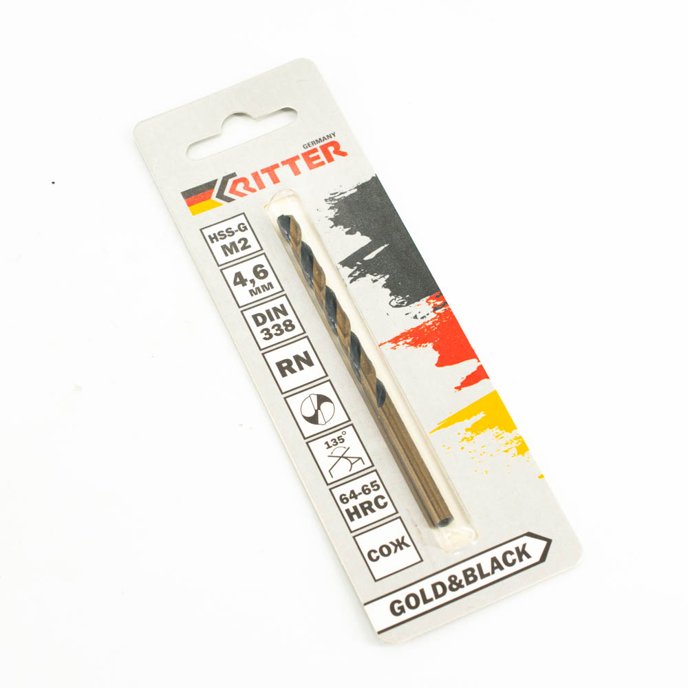 Сверло по металлу Ritter EC 4,6 мм (HSS-G M2 Gold&Black) DIN 338 RN (1 шт в блистере) (1000/250/1)