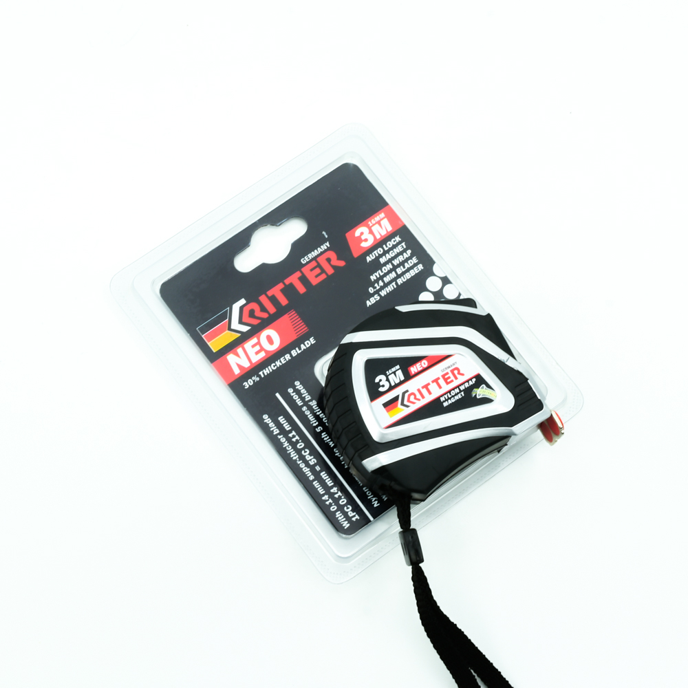 Рулетка Ritter Neo измерительная 3м х 16мм, автостоп, магнит, обёрнутое нейлоном утолщеное полотно, обрезиненная ударопрочная