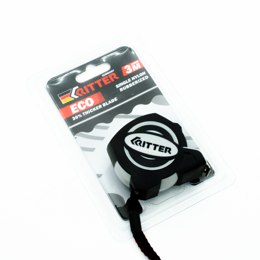 Рулетка измерительная Ritter Eco 3х16 мм (упрочненное полотно с нейлоновым покрытием, обрезин. ударопрочный корпус)