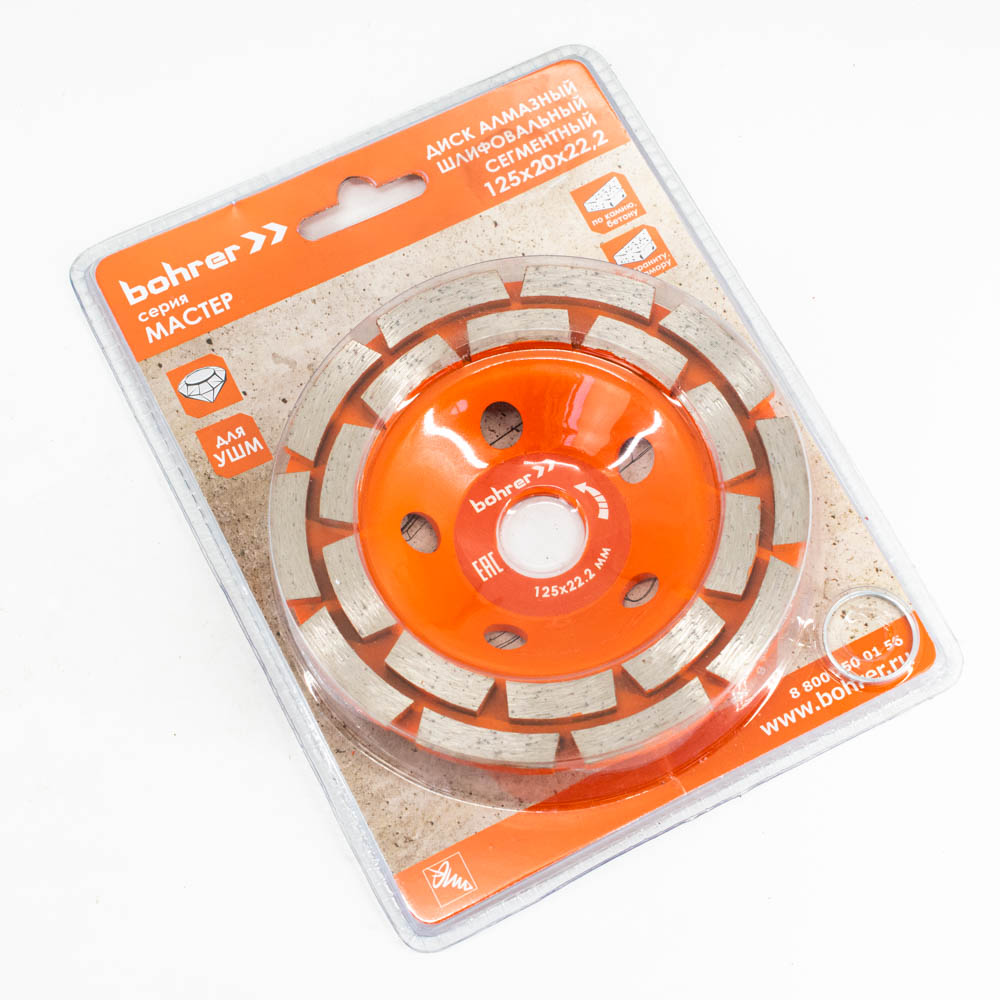 Диск алмазный шлифовальный (чашка) Bohrer Мастер Сегментная 2 ряда 125х22,2 (18 сегментов)