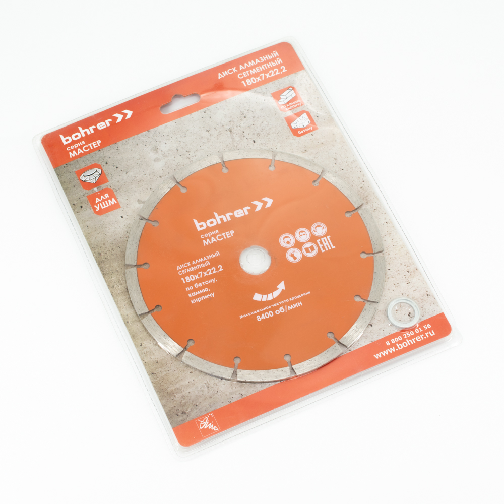 Диск алмазный Bohrer Мастер 180х7х22 (сегментный), сухой рез, по бетону/кирпичу/камню