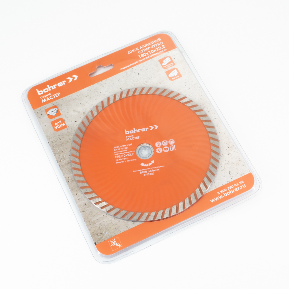 Диск алмазный Bohrer Мастер 180х10х22 (Супер-турбо), по железобетону/кирпичу/камню/граниту