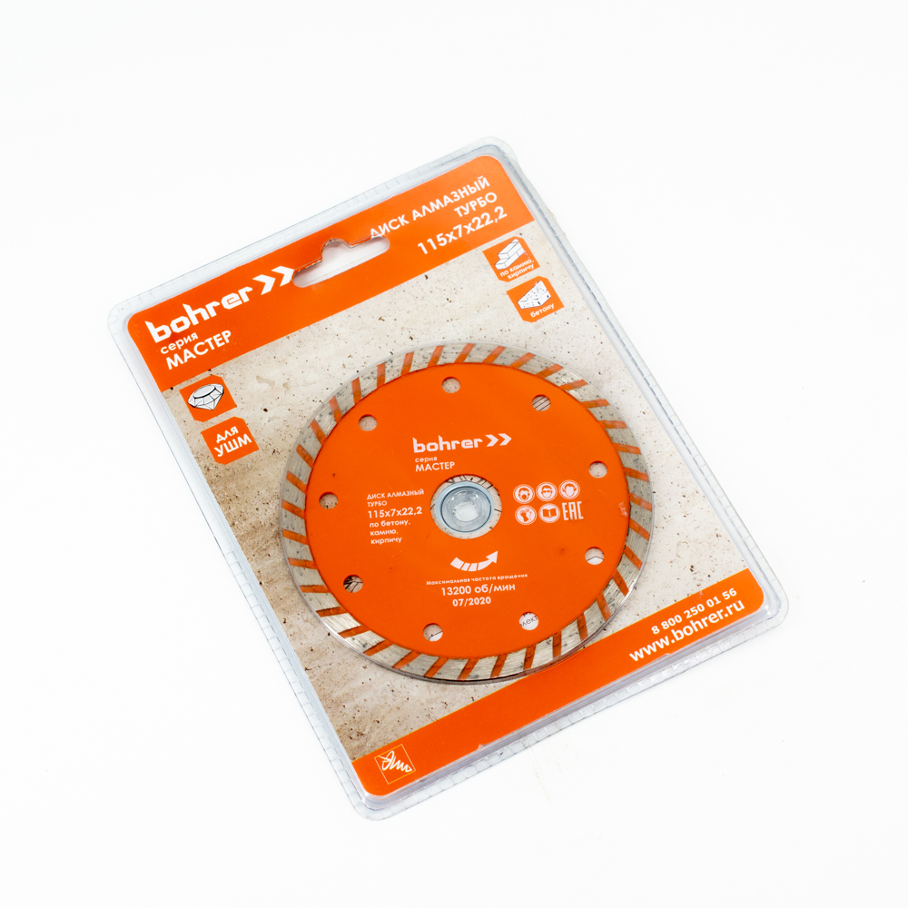 Диск алмазный Bohrer Мастер 115х7х22 (Турбо), сухой рез, по бетону/кирпичу/камню