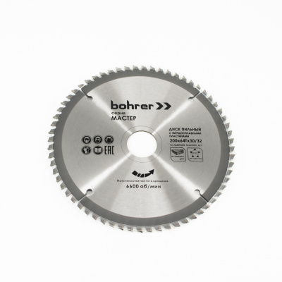 Диск пильный по ламинату/пластику Bohrer Мастер 200x32/30 мм, 64Т зуба