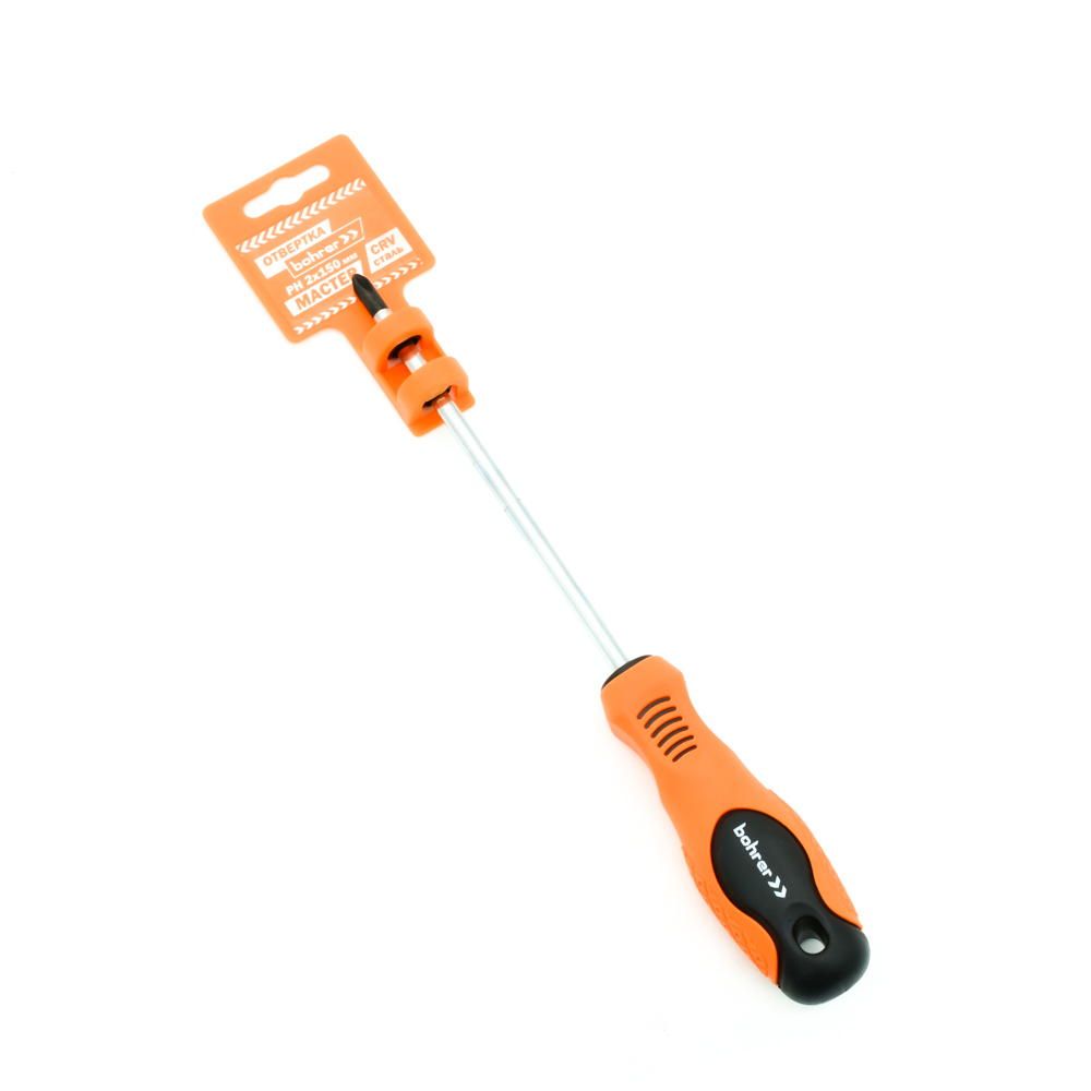 Отвертка Bohrer Мастер PH 2х150 мм (толщина 6 мм) (сталь CrV) магнитная, двухкомпонентная ручка (обрезиненная)