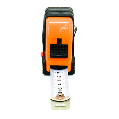 Рулетка - инструмент для проведения замеров. Имеет стойкое к истиранию полотно, что увеличивает рабочий ресурс. Корпус выполнен из пластика и обрезинен для повышения ударопрочности. Для плавной фиксации полотна предусмотрены два независимых механизма.