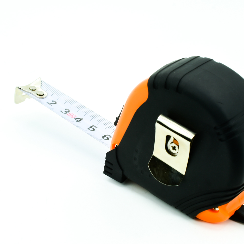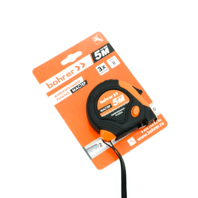 Рулетка Bohrer измерительная Мастер 5м х 19мм, 3 фиксации (с боковым фиксатором), обрезиненный ударопрочный корпус