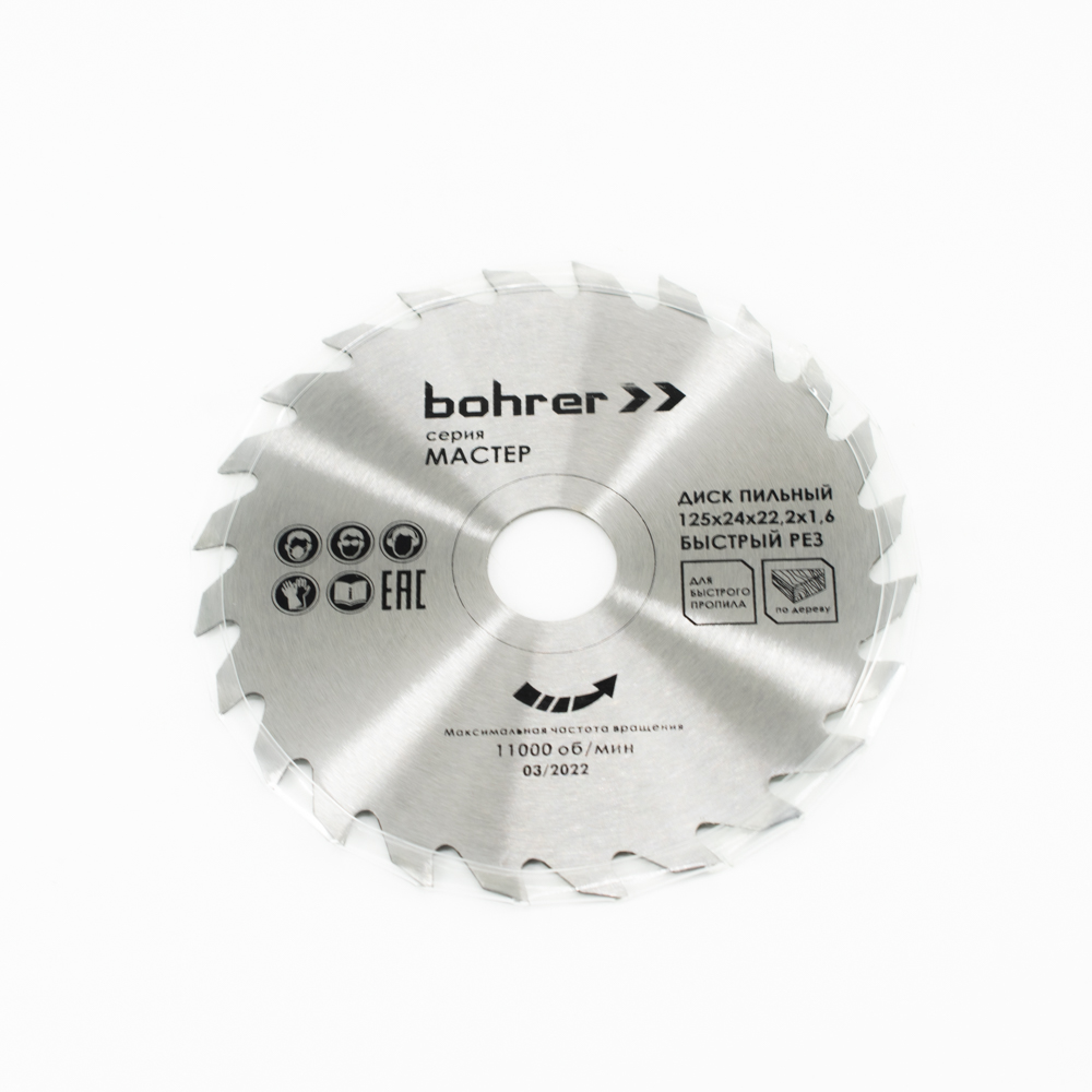 Диск пильный по дереву Bohrer Мастер 125x24x22,2x1,6 (быстрый рез)