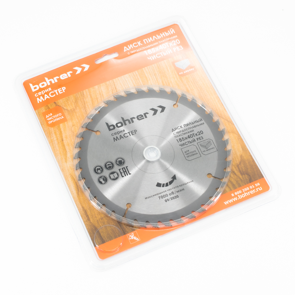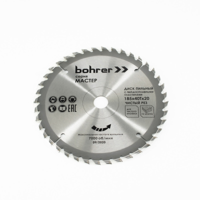 Диск пильный по дереву Bohrer Мастер 185х20/16 мм, 40Т зубьев (чистый рез)
