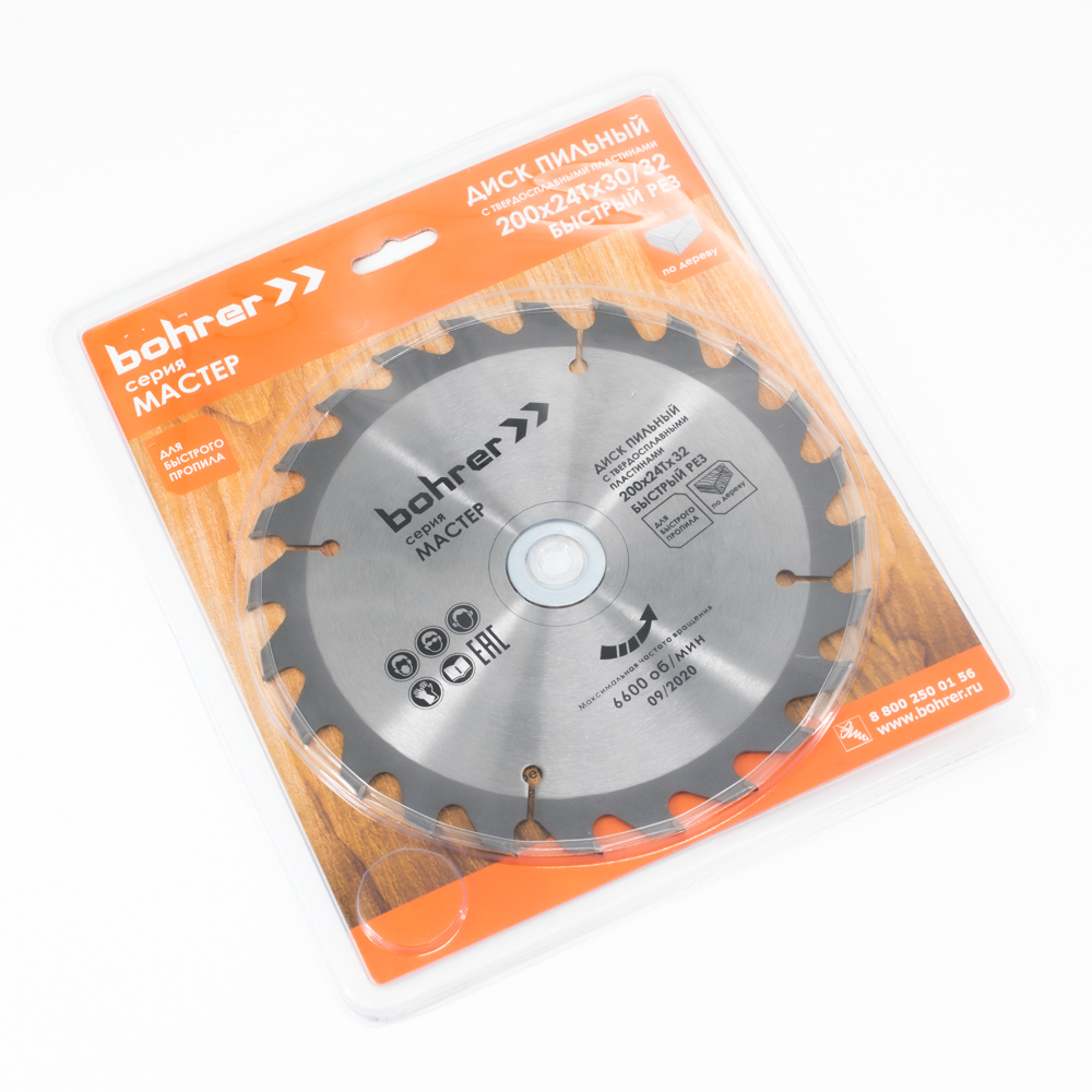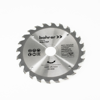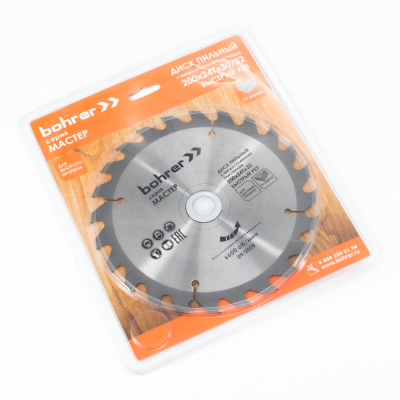 Диск пильный тв. по дереву Bohrer Мастер 200x32/30 мм, 24Т зуба (быстрый рез)