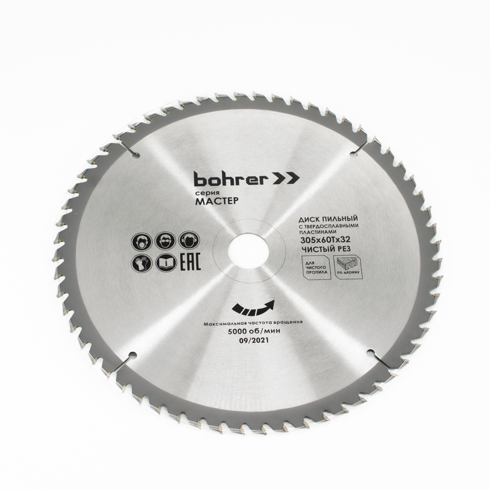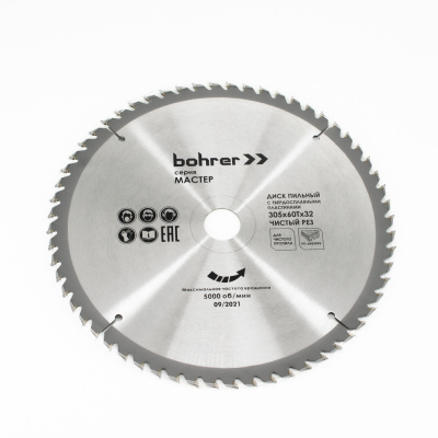 Диск пильный тв. по дереву Bohrer Мастер 305x30/20 мм, 60Т зубьев (чистый рез)