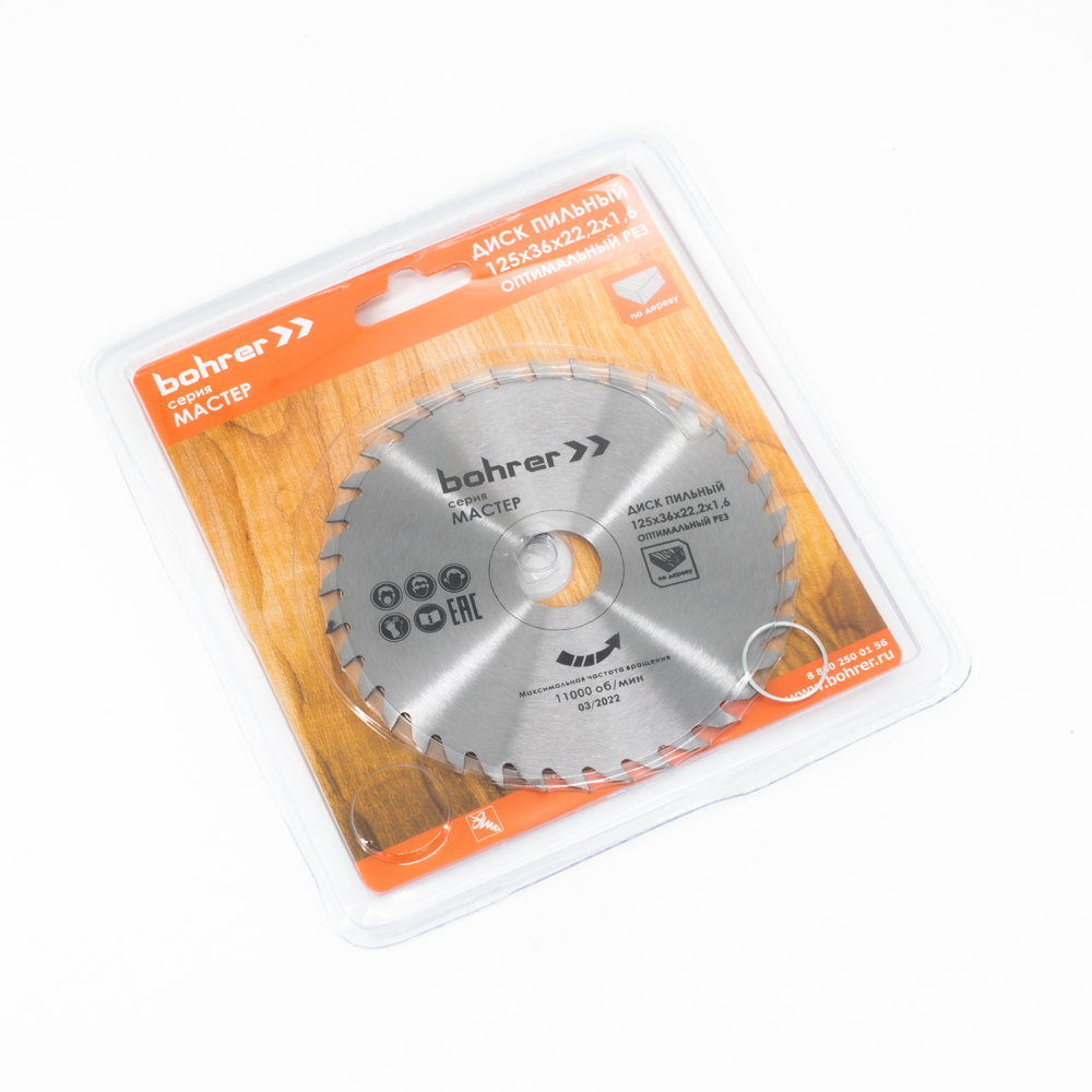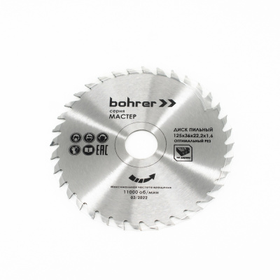 Диск пильный по дереву Bohrer Мастер 125х36х22,2х1,6 (оптимальный рез)