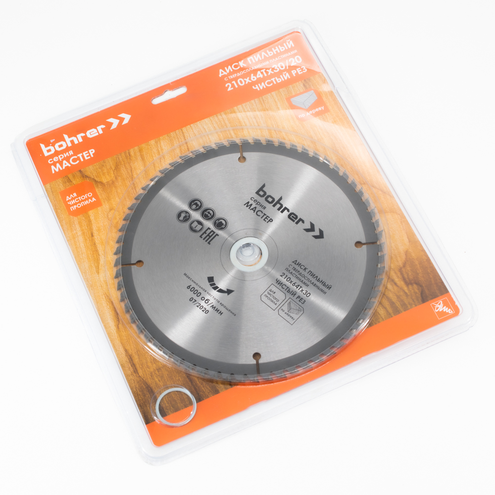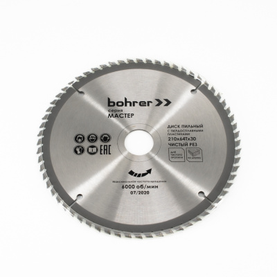 Диск пильный тв. по дереву Bohrer Мастер 210x30/20 мм, 64Т зубов (50/1)