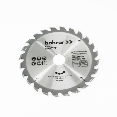 Диск пильный тв. по дереву Bohrer Мастер 190x30/20 мм, 24Т зуба (быстрый рез) (50/1)