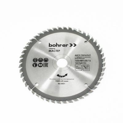 Диск пильный тв. по дереву Bohrer Мастер 160x20/16 мм, 48Т зубов (50/1)