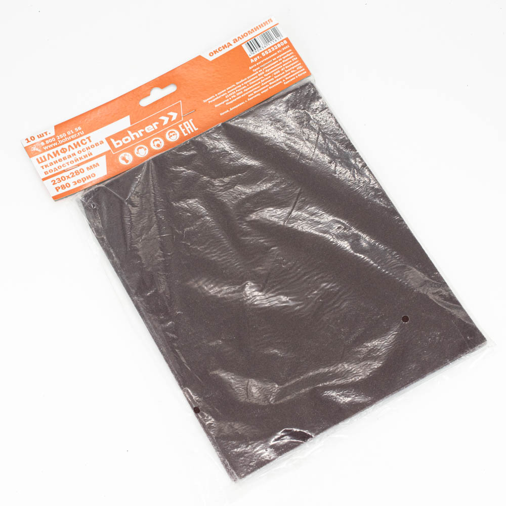 Шлифлист Bohrer 230х280 Р80 тканевая основа, водостойкий (оксид алюминия) (10 шт в уп)