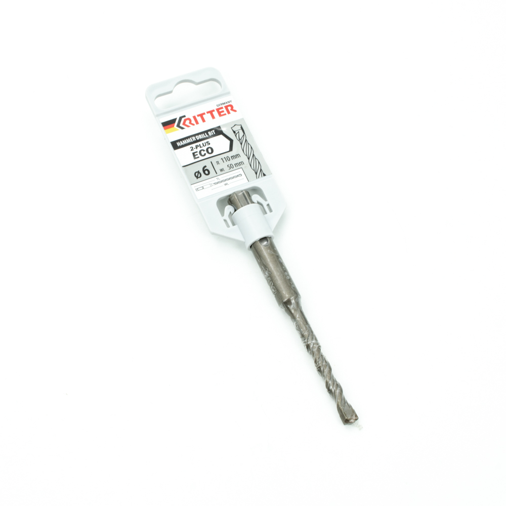 Бур SDS+ Ritter Eco 2-plus 6х 50/110 (W-образная увеличенная твердосплав. напайка, спираль с доп. пазом для быстрого пылеотвода)