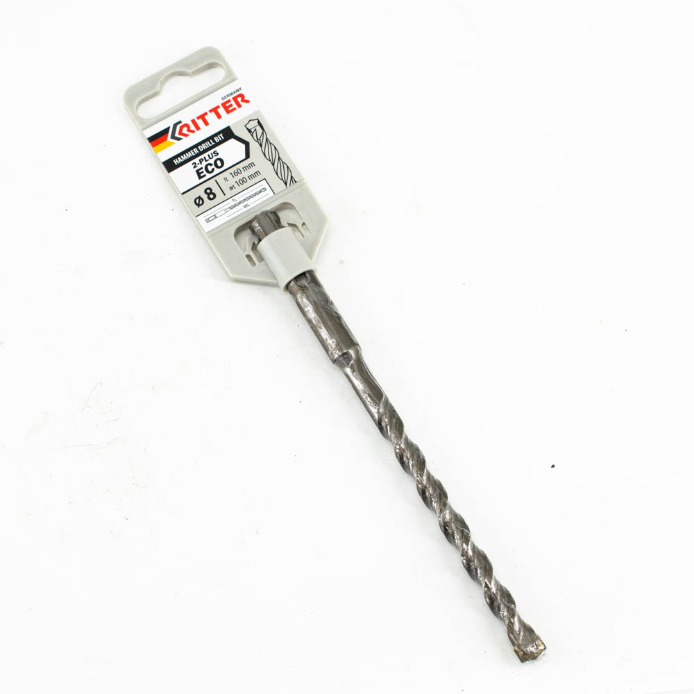 Бур SDS+ Ritter Eco 2-plus 8х100/160 (W-образная увеличенная твердосплав. напайка, спираль с доп. пазом для быстрого пылеотвода)