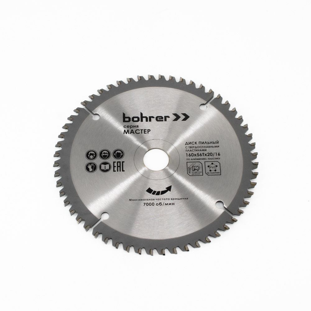 Диск пильный тв. по алюминию/пластику Bohrer Мастер 160x20/16 мм, 56Т зубьев