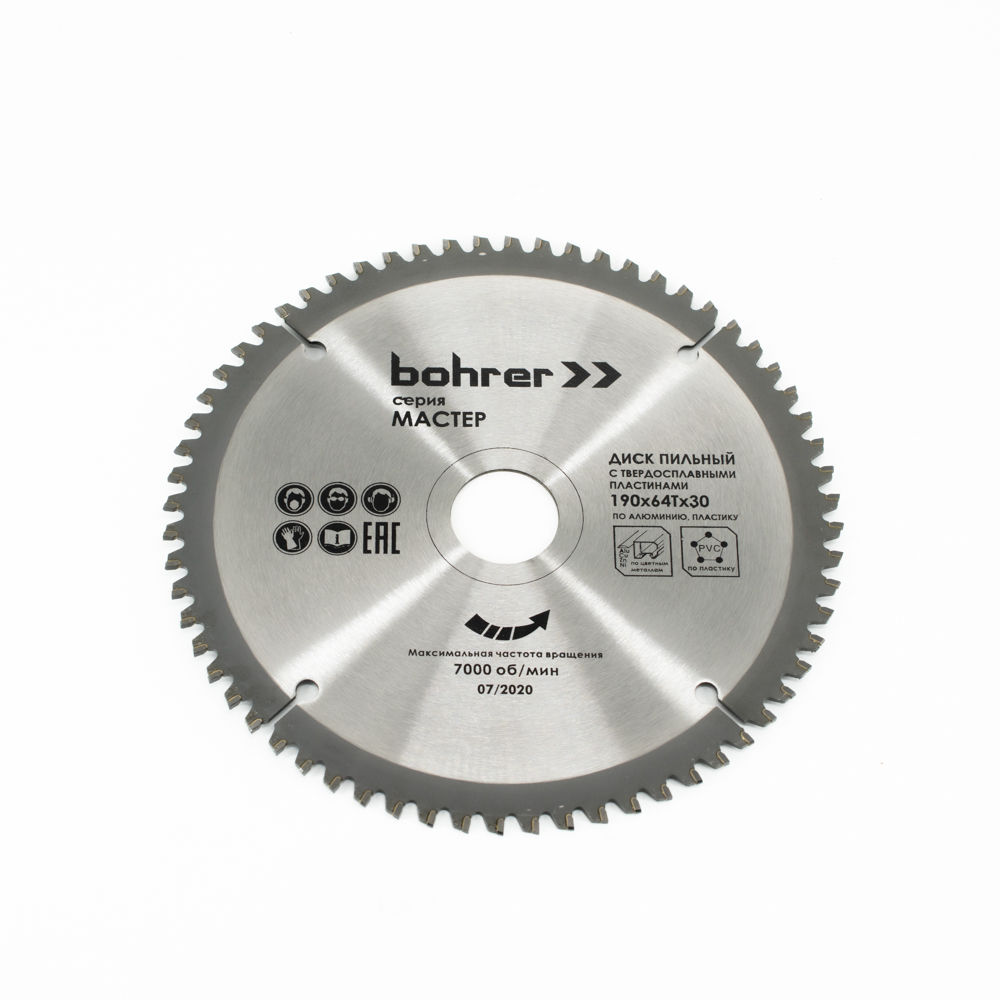 Диск пильный тв. по алюминию/пластику Bohrer Мастер 190x30/20 мм, 64Т зуба