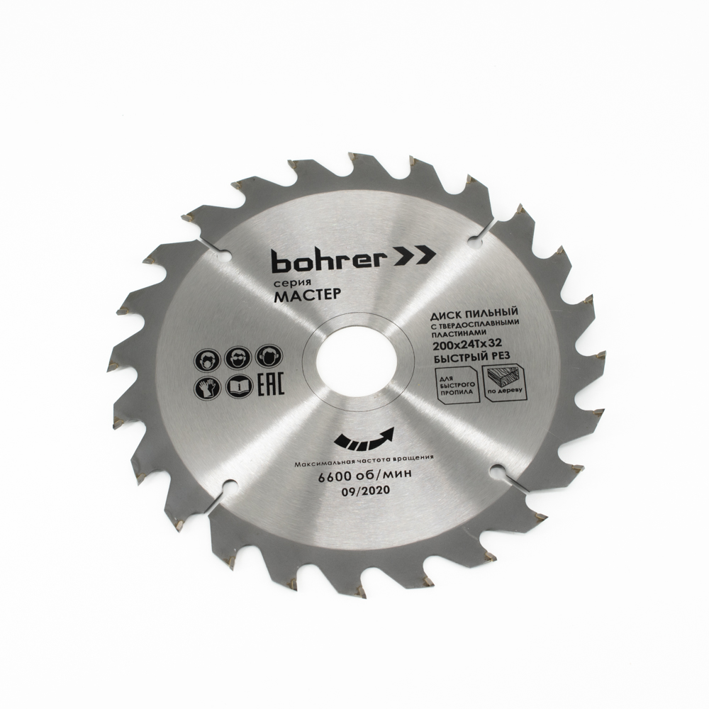 Диск пильный тв. по дереву Bohrer Мастер 200x32/30 мм, 24Т зуба (быстрый рез)