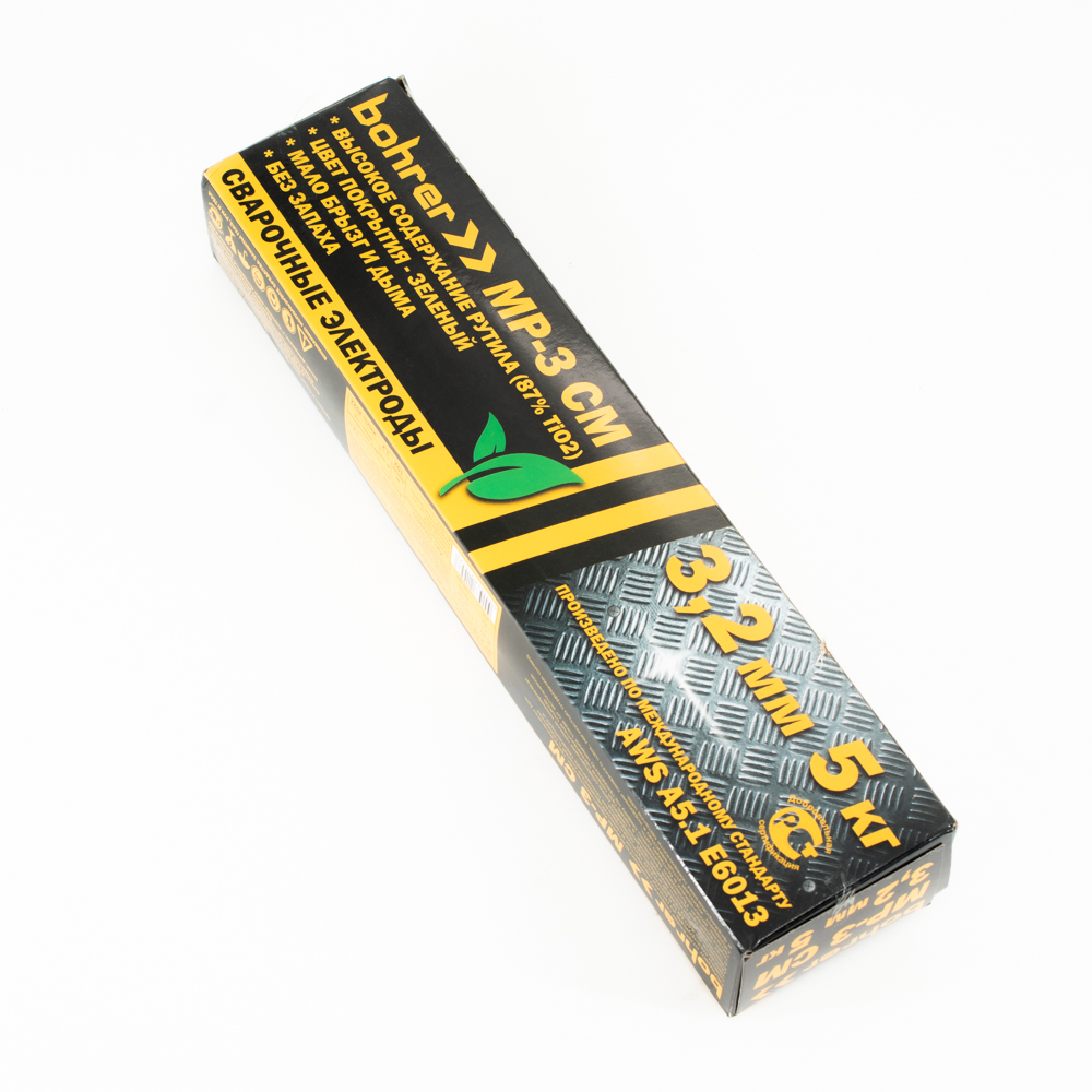 Электроды Bohrer МР-3 СМ d=3.2 мм (зеленые, натуральный рутил (87%TiO2), мало брызг и дыма, без запаха) (фасовка 5кг) (20/5)