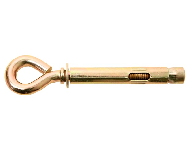 Данный вид анкера используют для крепления подвесных конструкций с применением гибких элементов, таких как цепи, тросы и канаты. Используются анкерные болты на строительных площадках. Монтаж анкера с крюком можно производить в любых плоскостях (стены, потолок, пол).