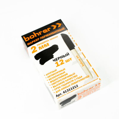 Маркер перманентный Bohrer 2 мм черный (круглый пулевидный) (1200/12)