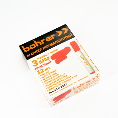 Маркер перманентный Bohrer 3 мм красный (круглый пулевидный) (1200/12)