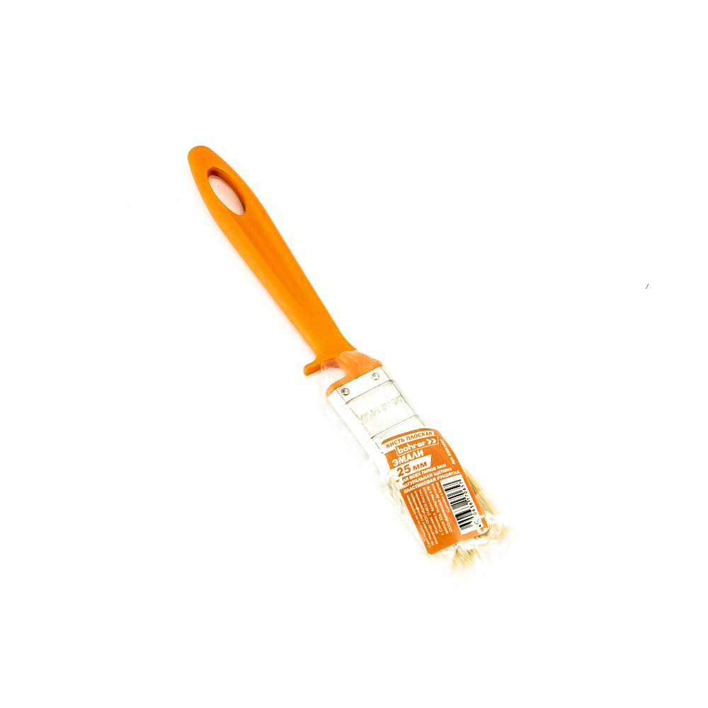 Кисть плоская Bohrer "Эмали" 25 мм (натур. щетина 45 х10 мм) оранж. пластиковая рукоятка Упаковка 12 шт.